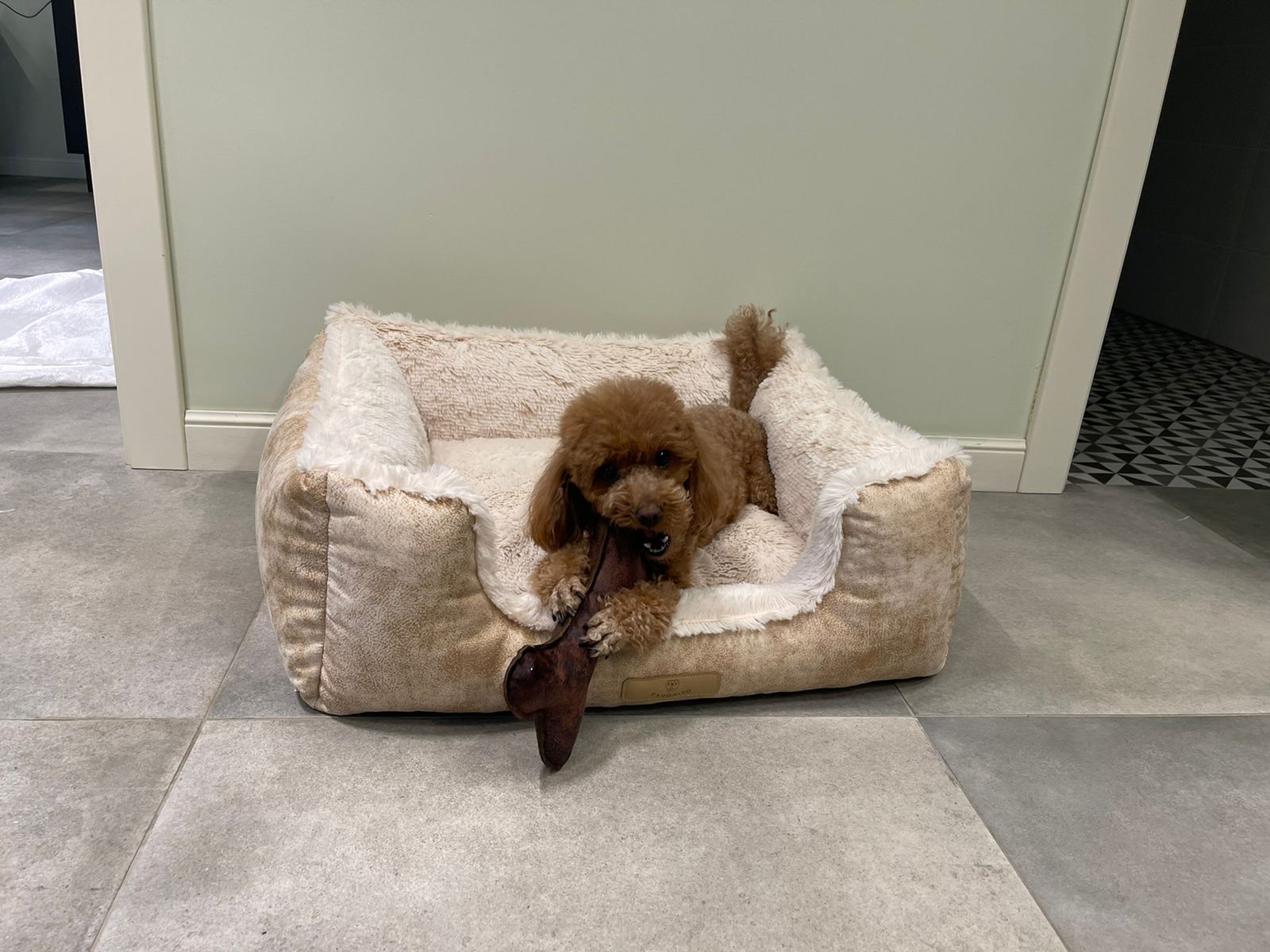 - Той-пудель / карликовый пудель — 85×65 см (спальное место 65×55 см), высота матраса 8 см, бортики 19 см